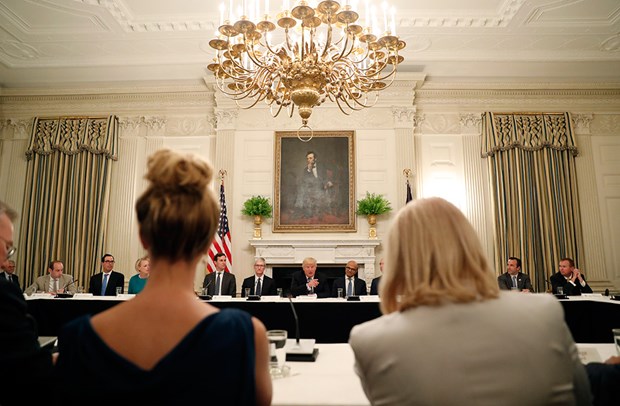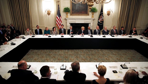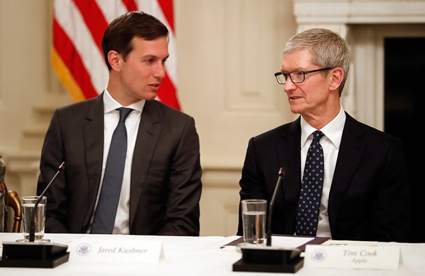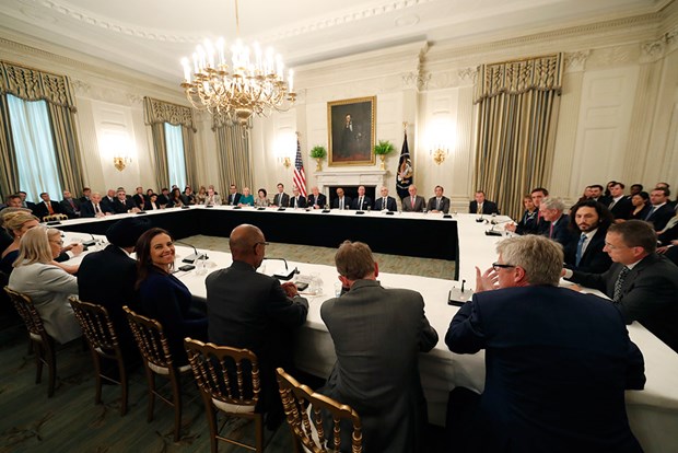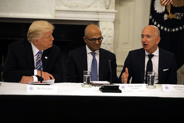 ABD Başkanı Donald Trump, Apple Üst Yöneticisi (CEO) Tim Cook, Microsoft CEO'su Satya Nadella, Amazon CEO'su Jeff Bezos, Google'ın ana kuruluşu Alphabet'in CEO'su Sundar Pichai dahil 10'dan fazla yöneticiyle Beyaz Saray'da bir araya geldi.